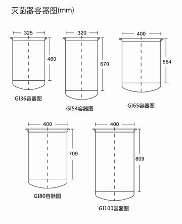 | 灭菌腔尺寸(直径*高)(mm) | Ф325×460 | Ф325×670 | Ф400×564 | Ф400×709 | Ф400×809 |